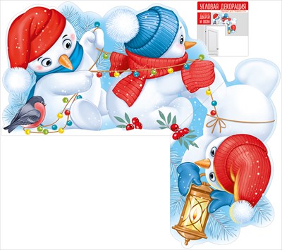 Плакат угловой Снеговики с гирляндой 3.0001365