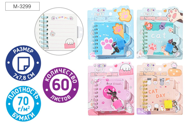 Блокнот 60л 7х7.8см ЛАПКИ M-3299