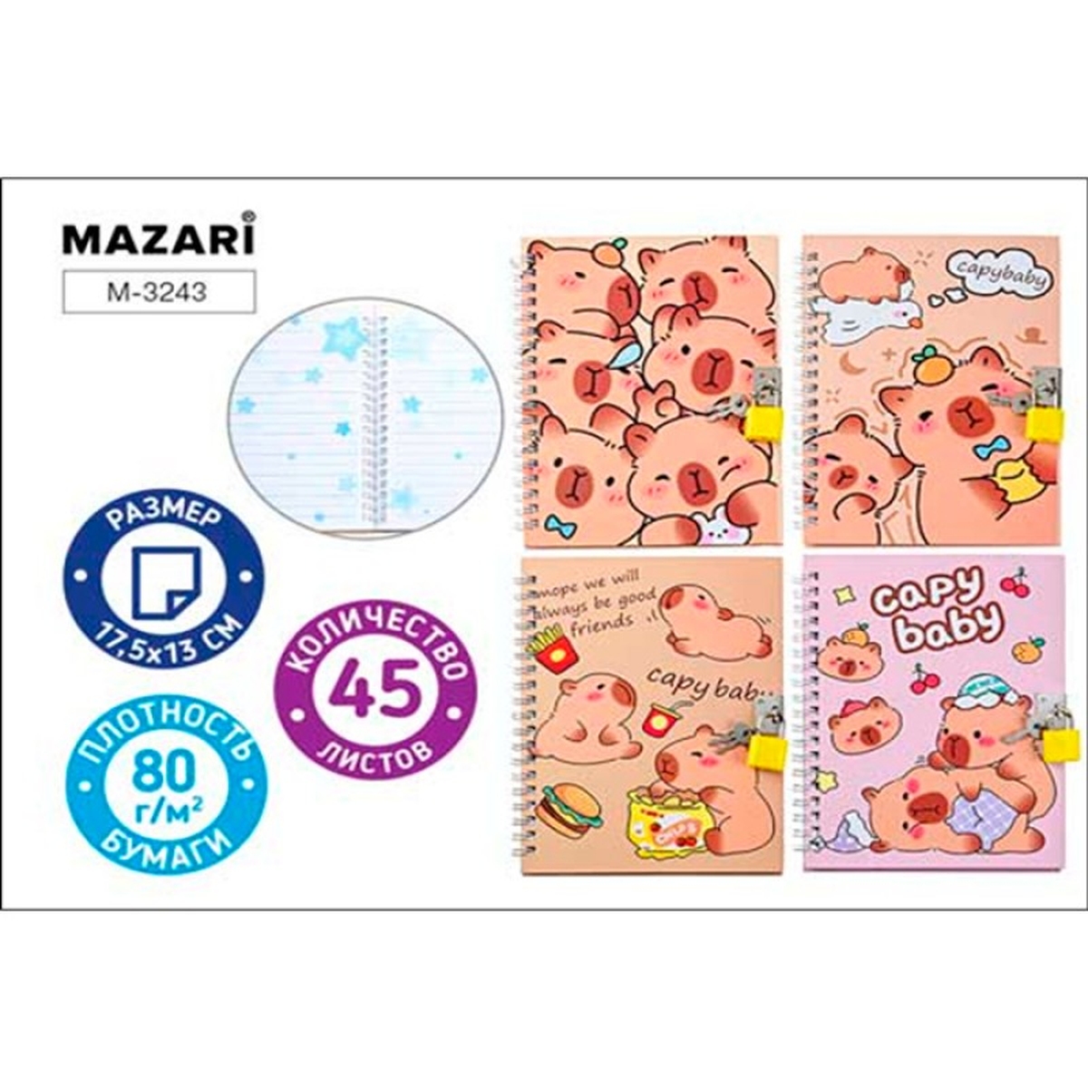 Блокнот с замочком CAPYBARA, 17.5х13 см, 45 л.