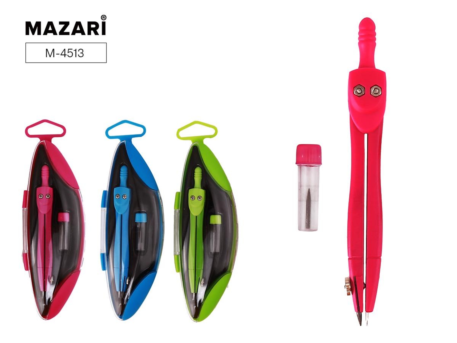 Готовальня, 2 предмета (циркуль 115 мм, грифели для циркуля в футляре), 3 цвета в ассортименте, плас