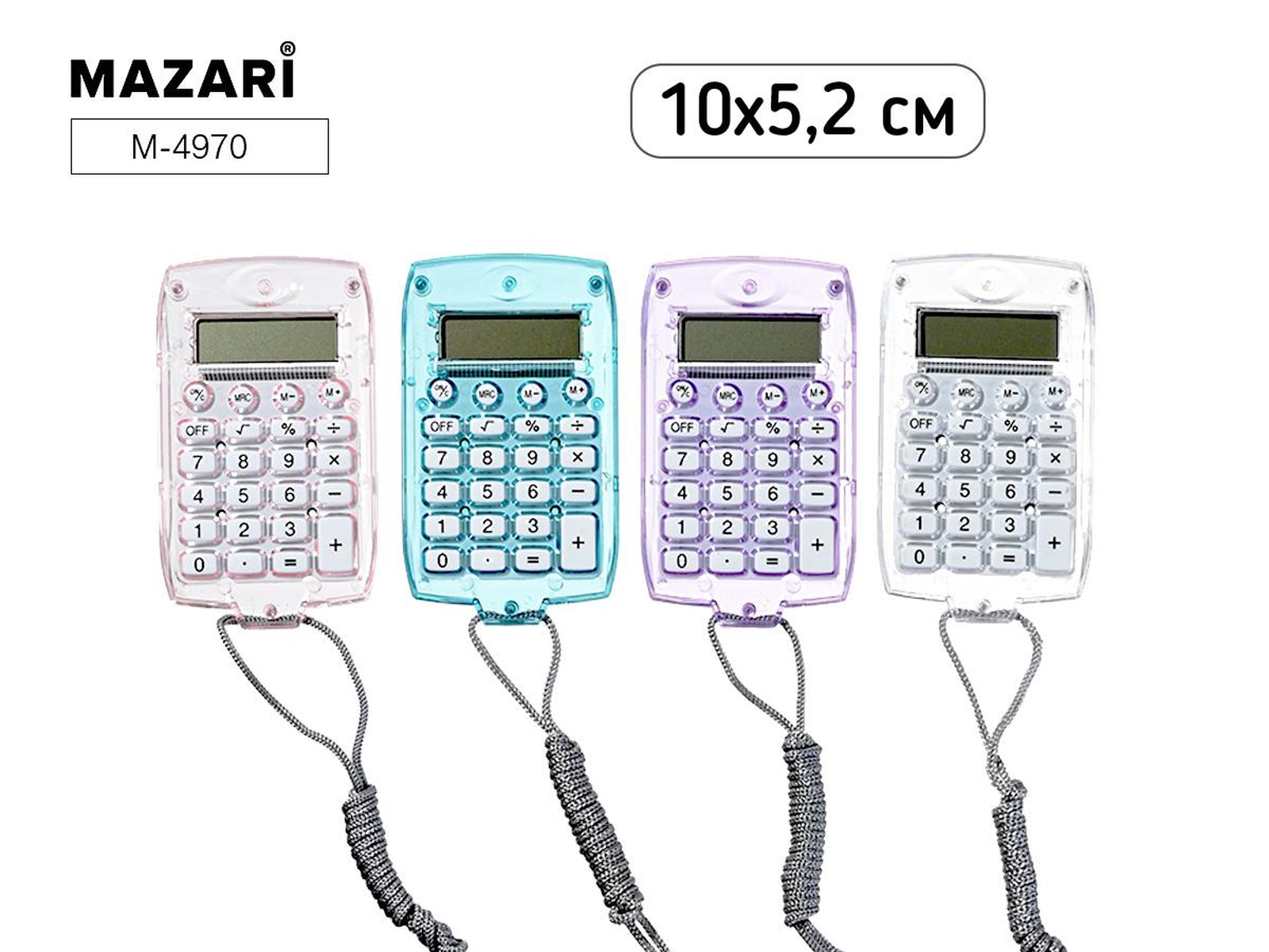 Калькулятор 8 разрядов батарейка AG10 в компл пластик 100х52 мм на шнурке 4 цв M-4970