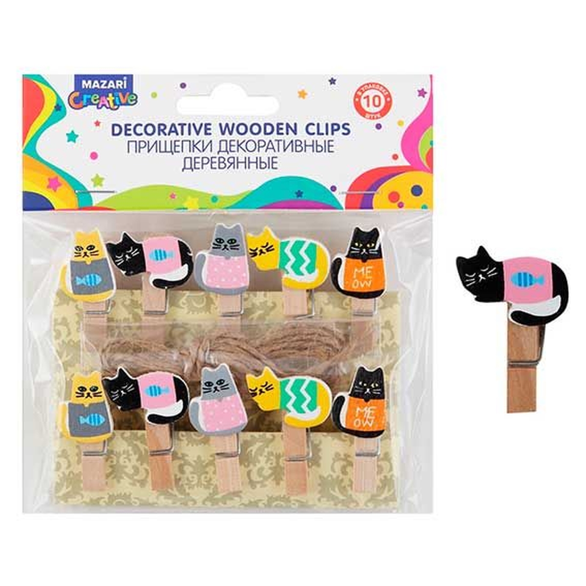 Прищепки декоративные деревянные КОШЕЧКИ, 10 шт, размер 3.5х0.7 см, ОПП-упаковка
