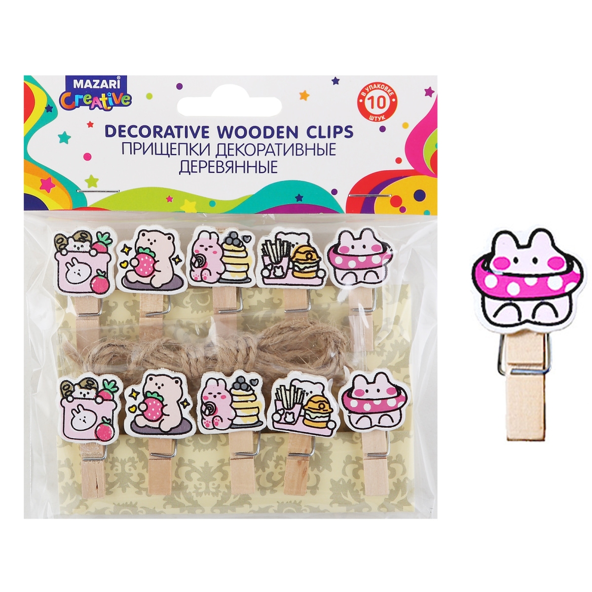 Прищепки декоративные деревянные DELICIOUS, 10 шт, размер 3.5х0.7 см, ОПП-упаковка