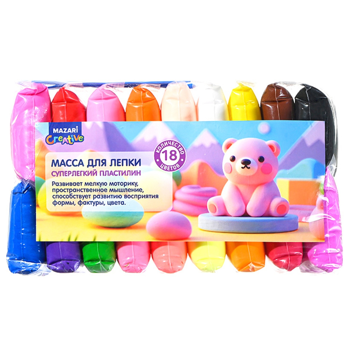 Пластилин суперлёгкий 18цв по 12г пластиковые стеки 3шт M-4197-18