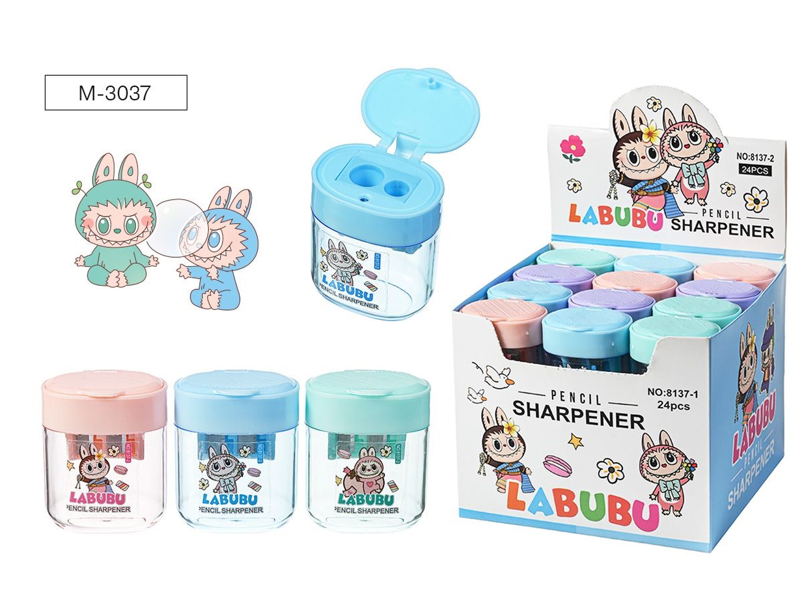 Точилка пластиковая ЗУБАСТИК, 2 отверстия для заточки, 4 дизайна, с контейнером для стружки, картон