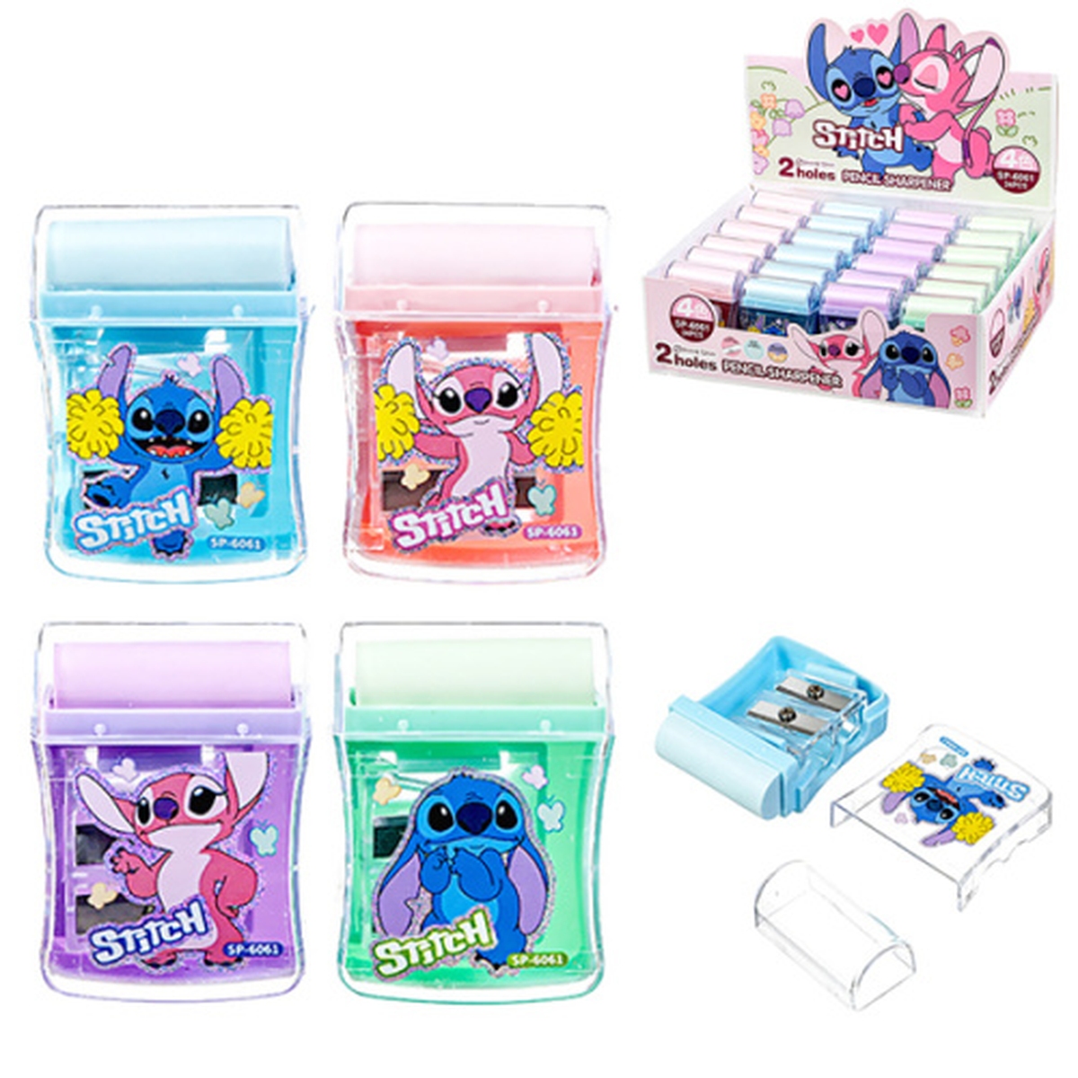 Точилка пластиковая УШАСТИК, 2 отверстия для заточки, ластик, 4 дизайна, с контейнером для стружки,