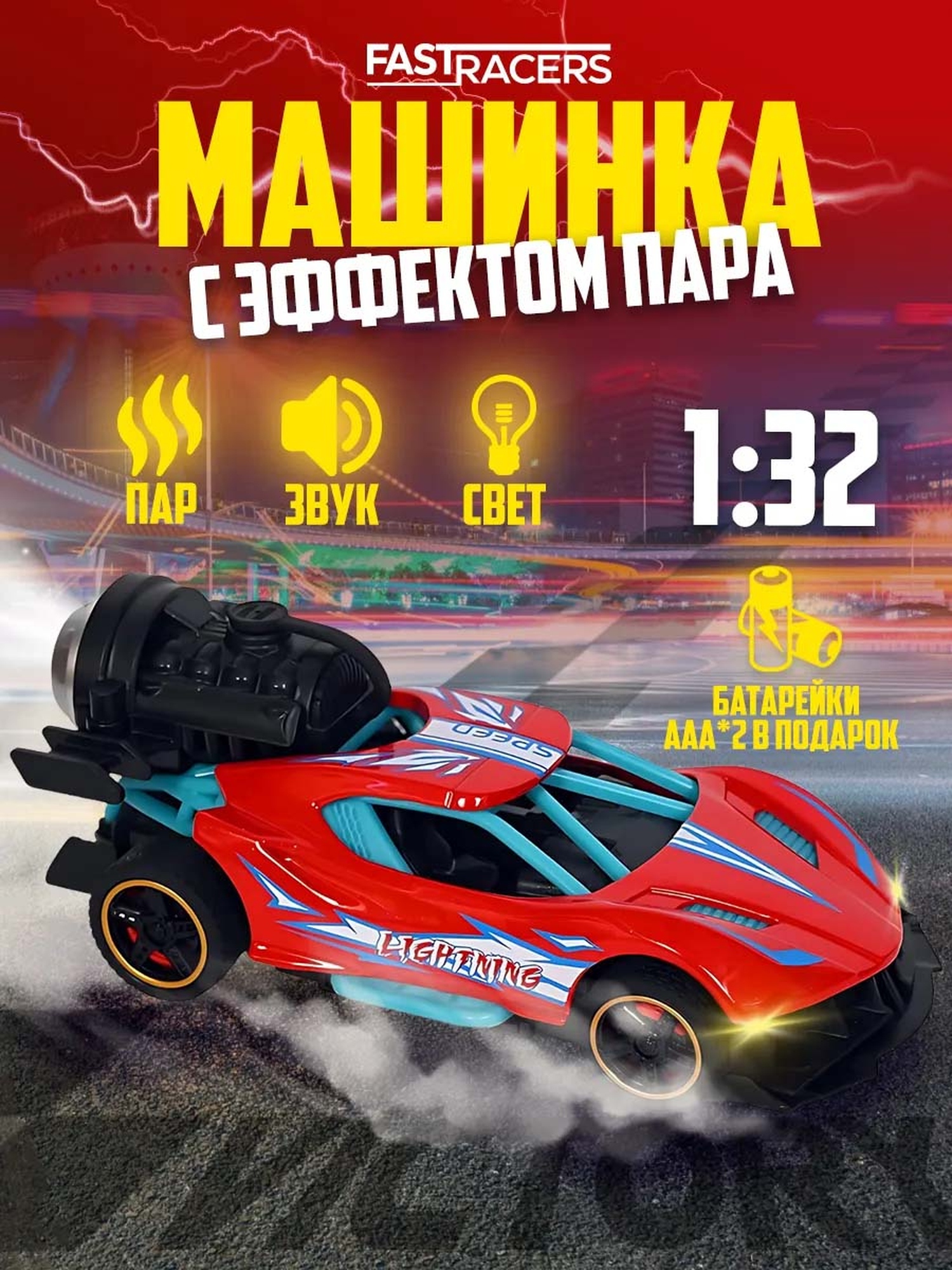 Гоночная машинка Speed Racing красная свет звук с имитацией дыма