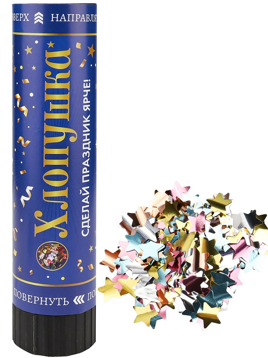 Хлопушка пневматическая Звезды фольгированные 20 см Х-2880
