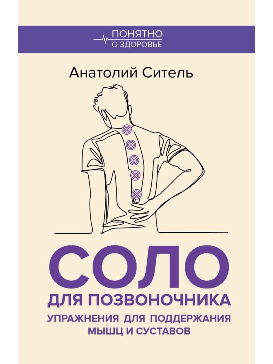 В своей книге "Соло для позвоночника" профессор Анатолий Ситель знакомит читателя со своей уникальной методикой самоисцеления, которая позволит читателю самостоятельно с помощью специальных лечебных поз-движений избавиться от болей в разных отделах позвоночника и суставах, восстановить их гибкость и подвижность за короткий срок. В основе метода самостоятельной ликвидации боли в позвоночнике и суставах лежит идея расслабляющего воздействия на спазмированную мышцу или группу мышц, непосредственно связанных с проблемным отделом позвоночника или суставом. Автор книги убежден, что состояние позвоночника определяет жизненный потенциал человека, что здоровый позвоночник — шанс каждого из нас на активное долголетие без болезней и страданий. Ведь именно через позвоночник идут сигналы и нервные импульсы-команды ко всем жизненно важным органам! Если вы хотите восстановить жизненные силы и избавиться не только от болей в позвоночнике и суставах, но также от головных и сердечных болей, нарушений сердечного ритма и головокружений, сбоев в работе органов пищеварения, а также других хронических недомоганий — прежде всего восстановите здоровье позвоночника по предложенной методике.