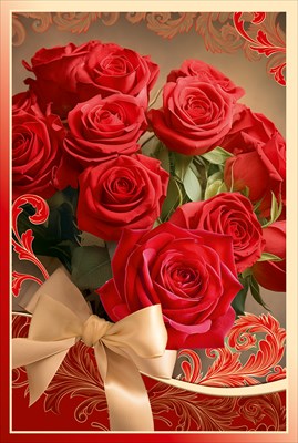 Открытка Без надписи Розы с бантом жен 5.0001993