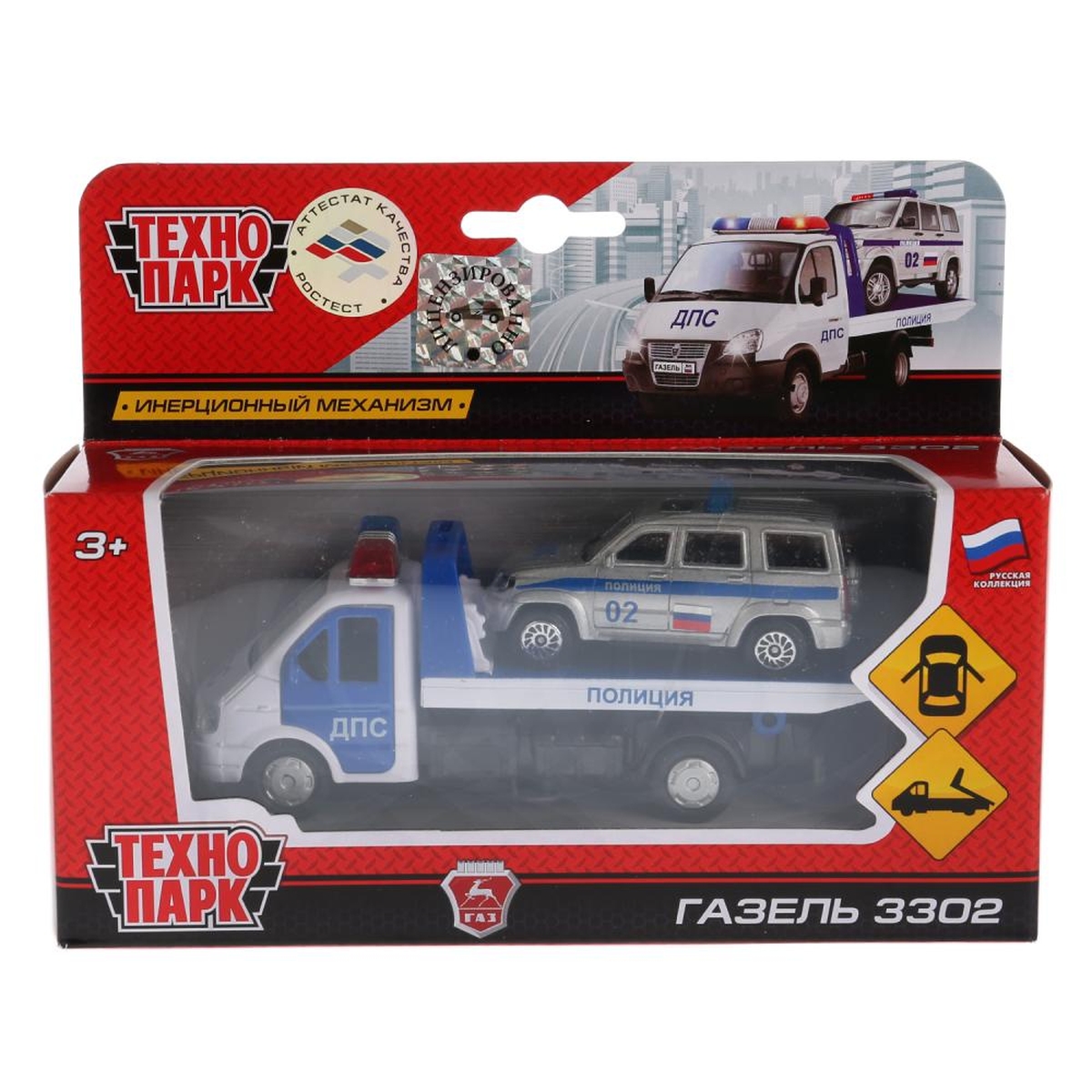 Модель Маш ГАЗЕЛЬ ЭВАКУАТОР 12,5 см дв под дет инерц + патриот 7,5 см металл SB-16-42-T3-WB (48)