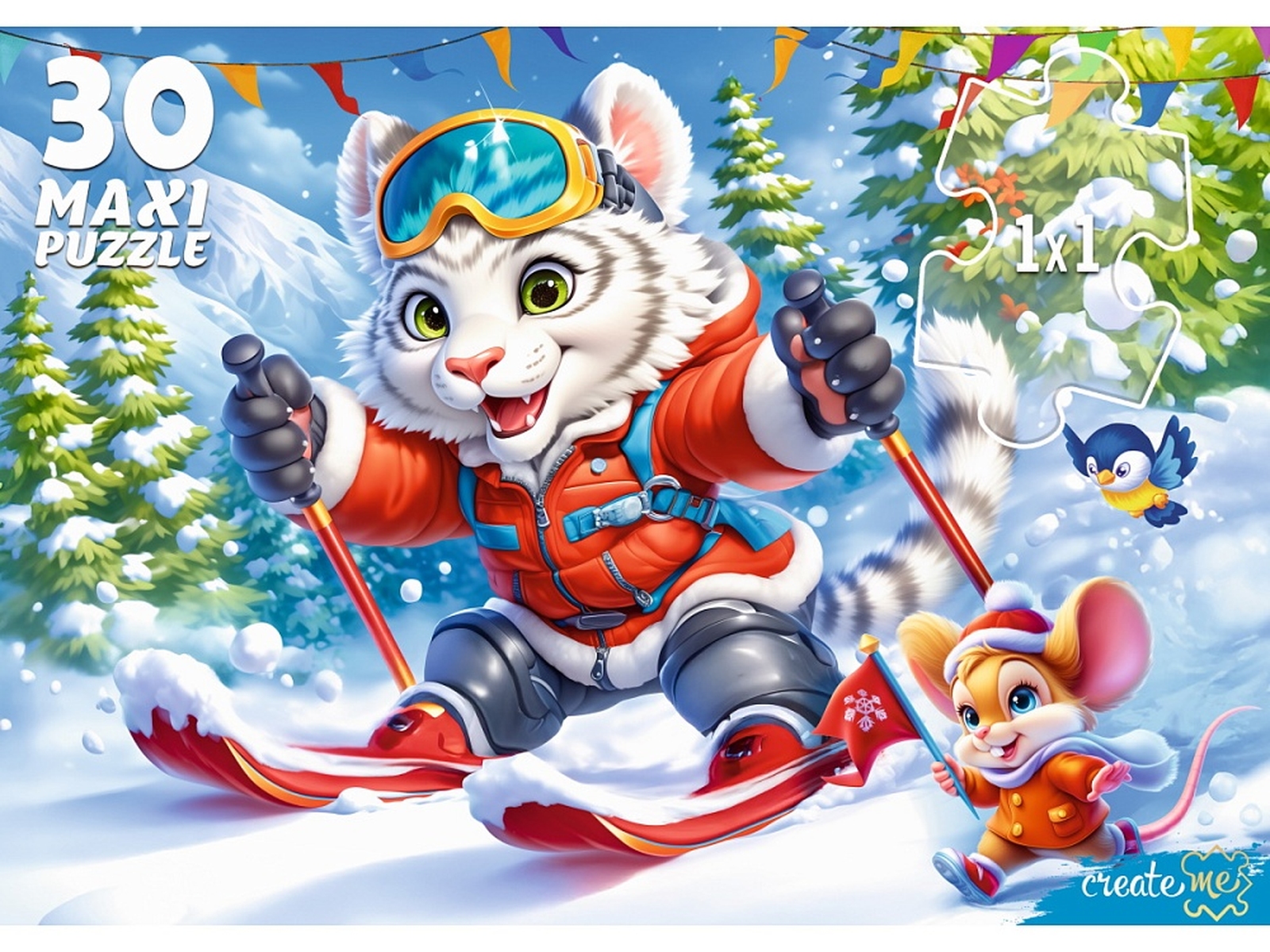 Паззл 30 ТИГР НА ЛЫЖАХ MAXI ПМ30 7582