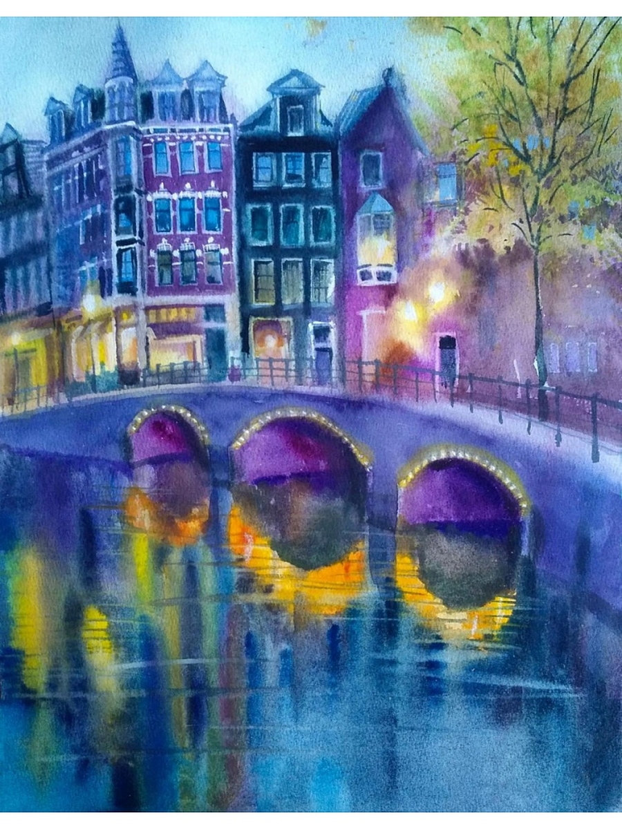 Алмаз мозаика 17х22 см с подр с полн заполн 18цв Сумерки Амстердама НД 0728