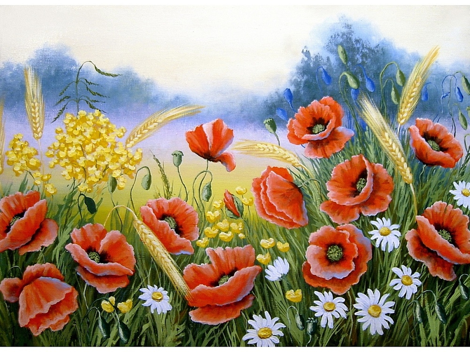 Алмаз мозаика 30х40 см с подр с полн заполн 30цв Маки в поле НД-0557