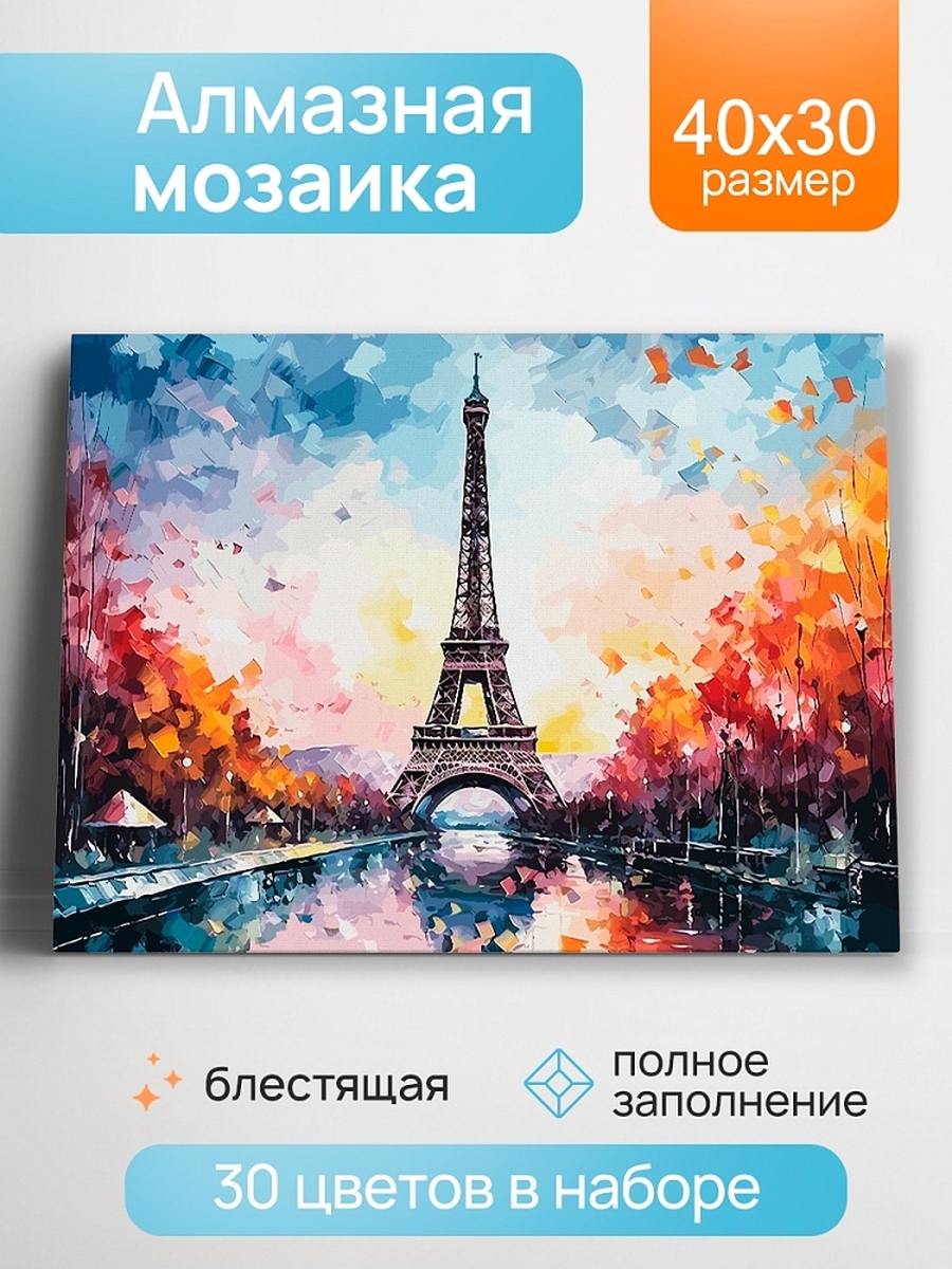 Алмаз мозаика 30х40 см с подр с полн заполн блест 30цв Символ Парижа АЛМ 0017