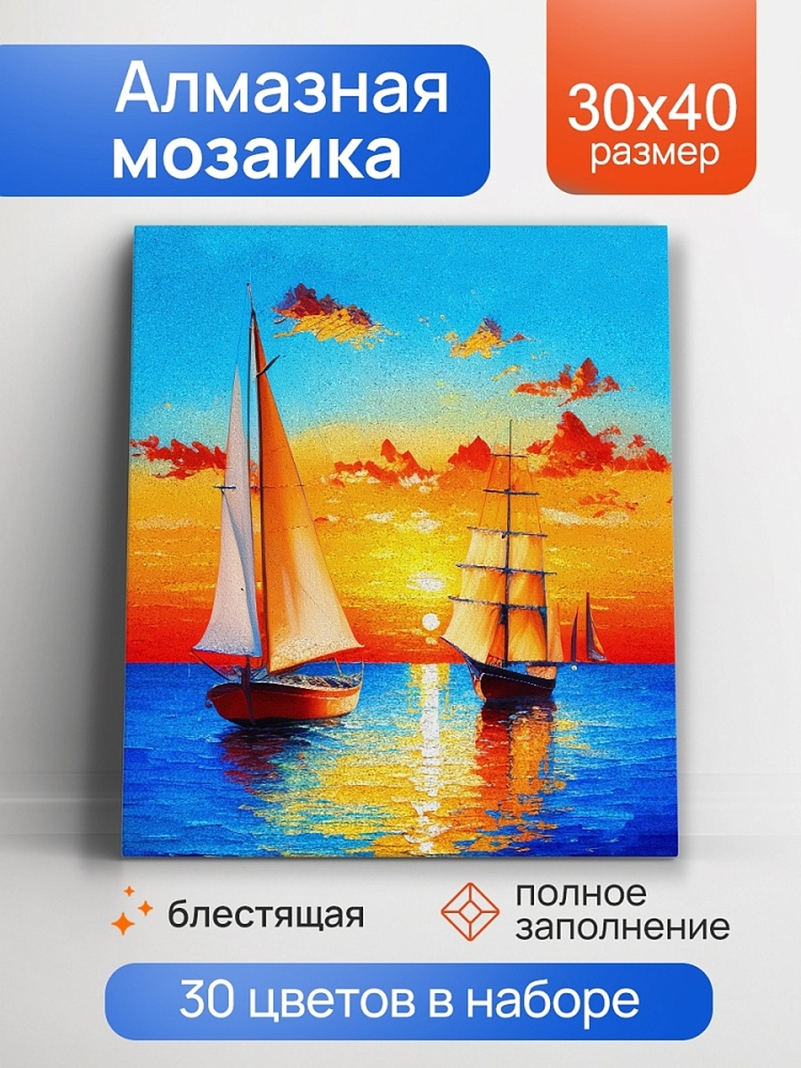 Алмаз мозаика 30х40 см с подр с полн заполн блест 30цв Парусники в мореАЛМ 0028