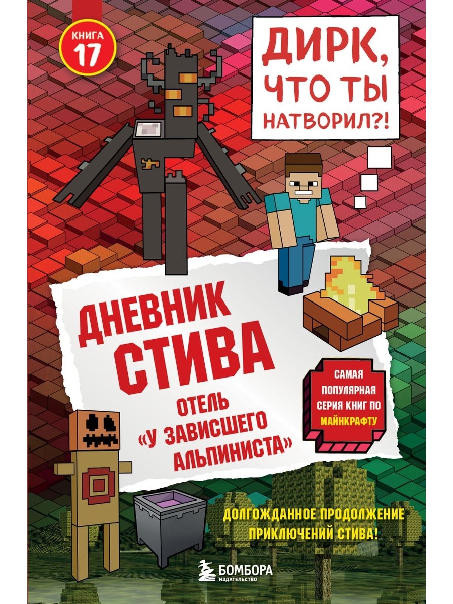 Ну вот, только я решил, что мои приключения закончились, как БАЦ! — и я снова в мире «МАЙНКРАФТ»! На этот раз всё началось с Дирка — и Хиробрина! (Да-да, ТОГО самого!) Теперь нам с Дирком придётся спуститься с самой высокой горы, пробраться через ТЁМНЫЙ лес, найти загадочный ОТЕЛЬ и понять, зачем Хиробрин решил испытать игроков! Будет жарко (и ХОЛОДНО), громко (и ТИХО) и очень, ОЧЕНЬ весело — потому что, когда рядом Дирк, всё идёт не по плану! Хочешь узнать, кто победит? Тогда открывай дневник — скучать тут точно не придётся! Читайте в серии: 1. «Дневник Стива, застрявшего в Minecraft» 2. «Дневник Стива. Конёк-квадратноног» 3. «Дневник Стива. Собачья жизнь» 4. «Дневник Стива. Оцелот на оцелоте» 5. «Дневник Стива. Ушастая угроза» 6. «Дневник Стива. Секретные МУ-Утериалы» 7. «Дневник Стива. Стив, колдунья и наковальни» 8. «Дневник Стива. Холодные игры» 9. «Дневник Стива. Куда приводит портал» 10. «Дневник Стива. На суше и на море» 11. «Дневник Стива. Дом в тёмном лесу» 12. «Дневник Стива. Куда глаза летят» 13. «Дневник Стива. Визжащий в лабиринте» 14. «Дневник Стива. Крайний том» 15. «Дневник Стива. Остров невезения» 16. «Дневник Стива. Неожиданные встречи» 17.«Дневник Стива. Отель "У зависшего альпиниста"»
