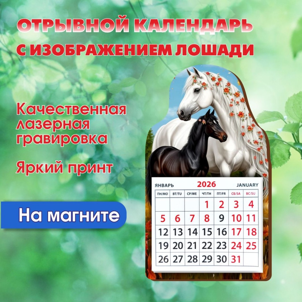 Магнит календарь №2 Лошади с бумажным отрывным календарем