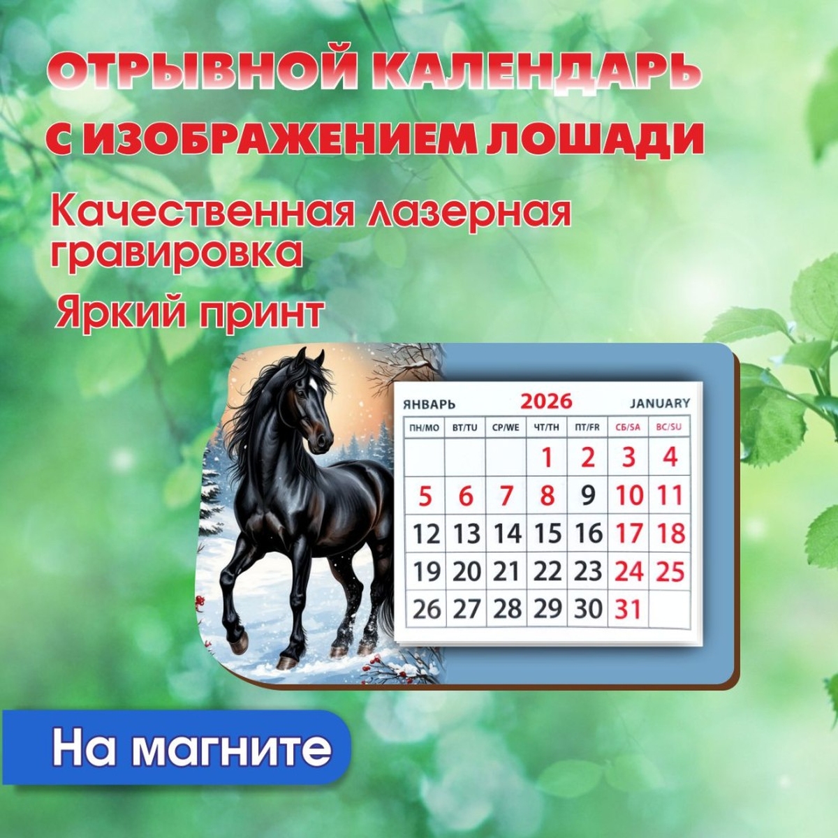 Магнит календарь №5 Лошади с бумажным отрывным календарем