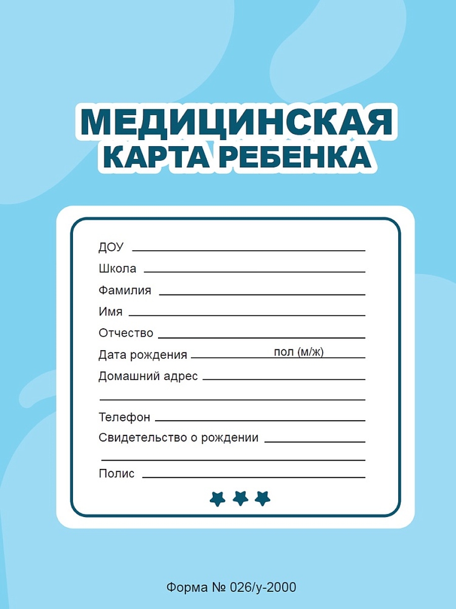 МЕДИЦИНСКАЯ КАРТА на скрепке ГОЛУБАЯ ПрПр
