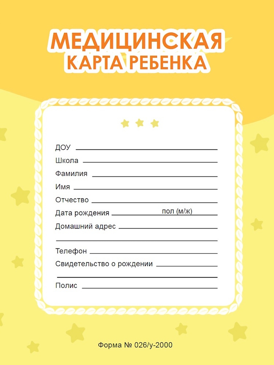 МЕДИЦИНСКАЯ КАРТА на скрепке ЖЕЛТАЯ ПрПр