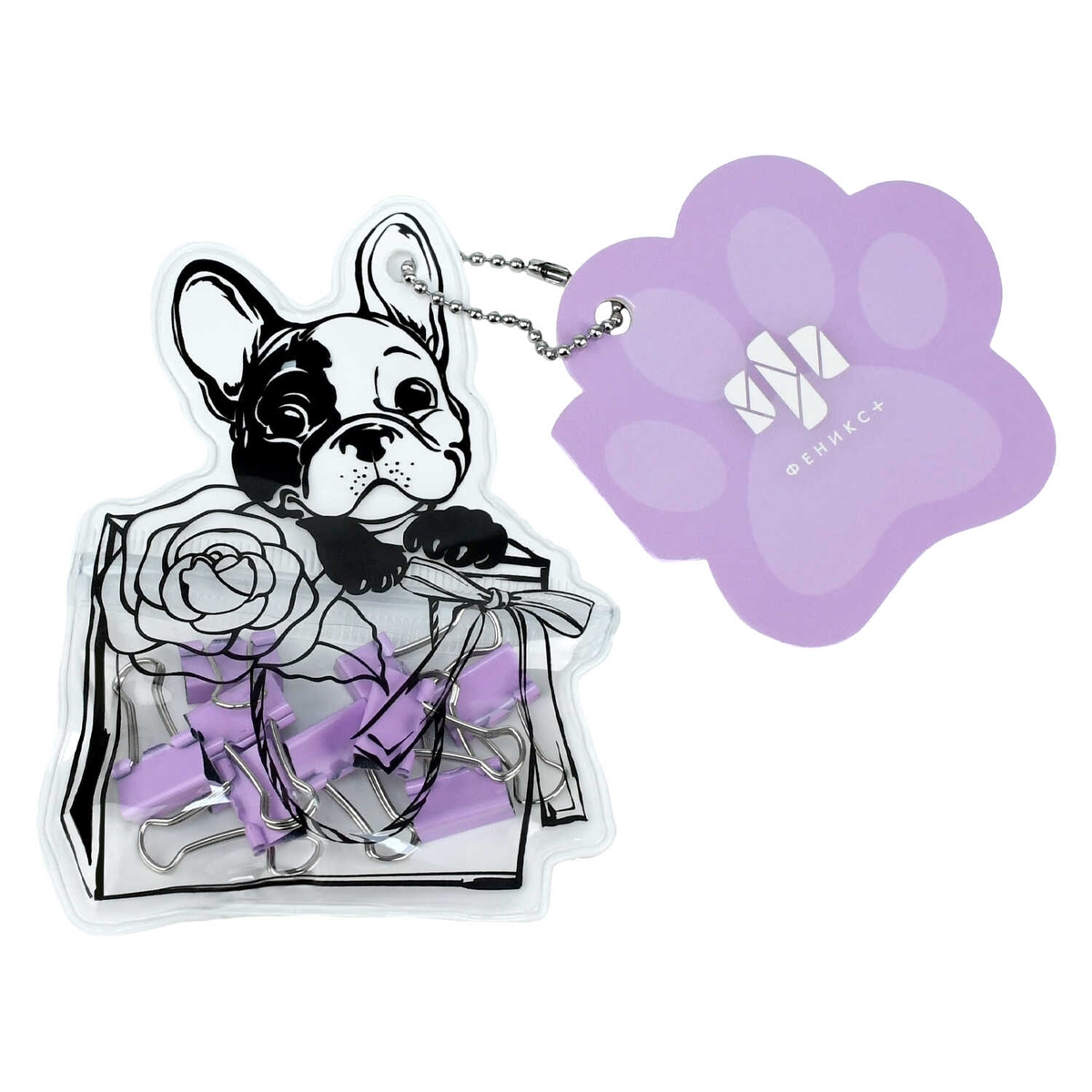 Зажимы канцелярские 15х25мм Милый мопс 10шт Сиреневый 71502