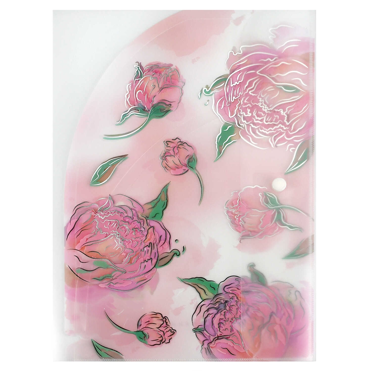 Папка для документов пластиковая арт. 65843/ 12 РОЗОВЫЙ ЦВЕТЫ (полипропилен, формат А4, 23x32 см, 2
