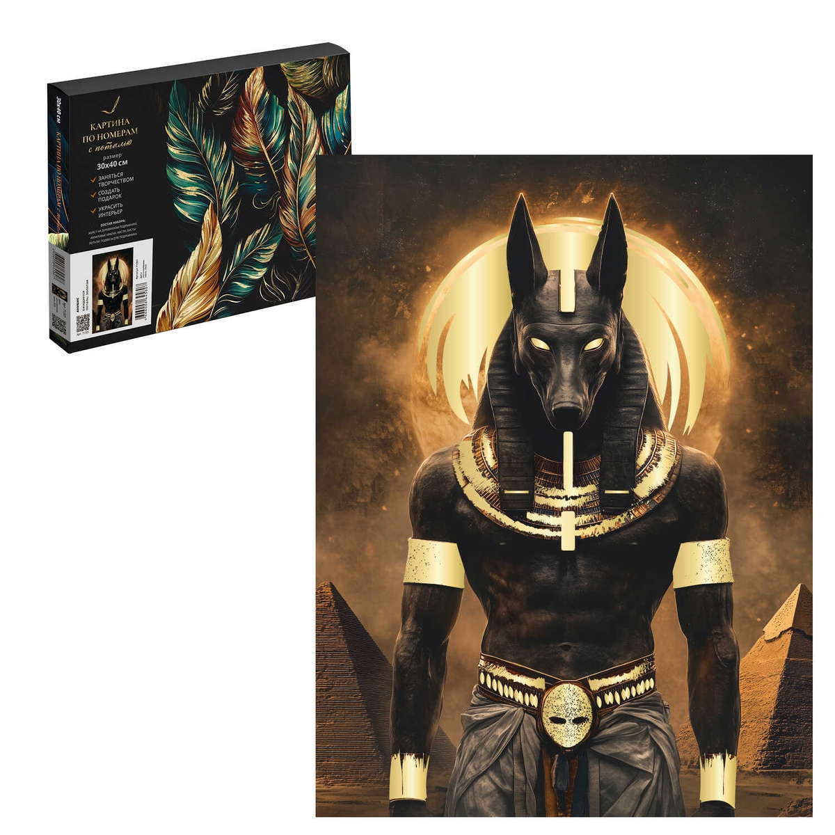 Картина по номерам с поталью на черном холсте АНУБИС 71301