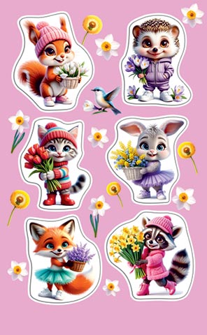 0-11-8060 Наклейки Зверята с цветами
