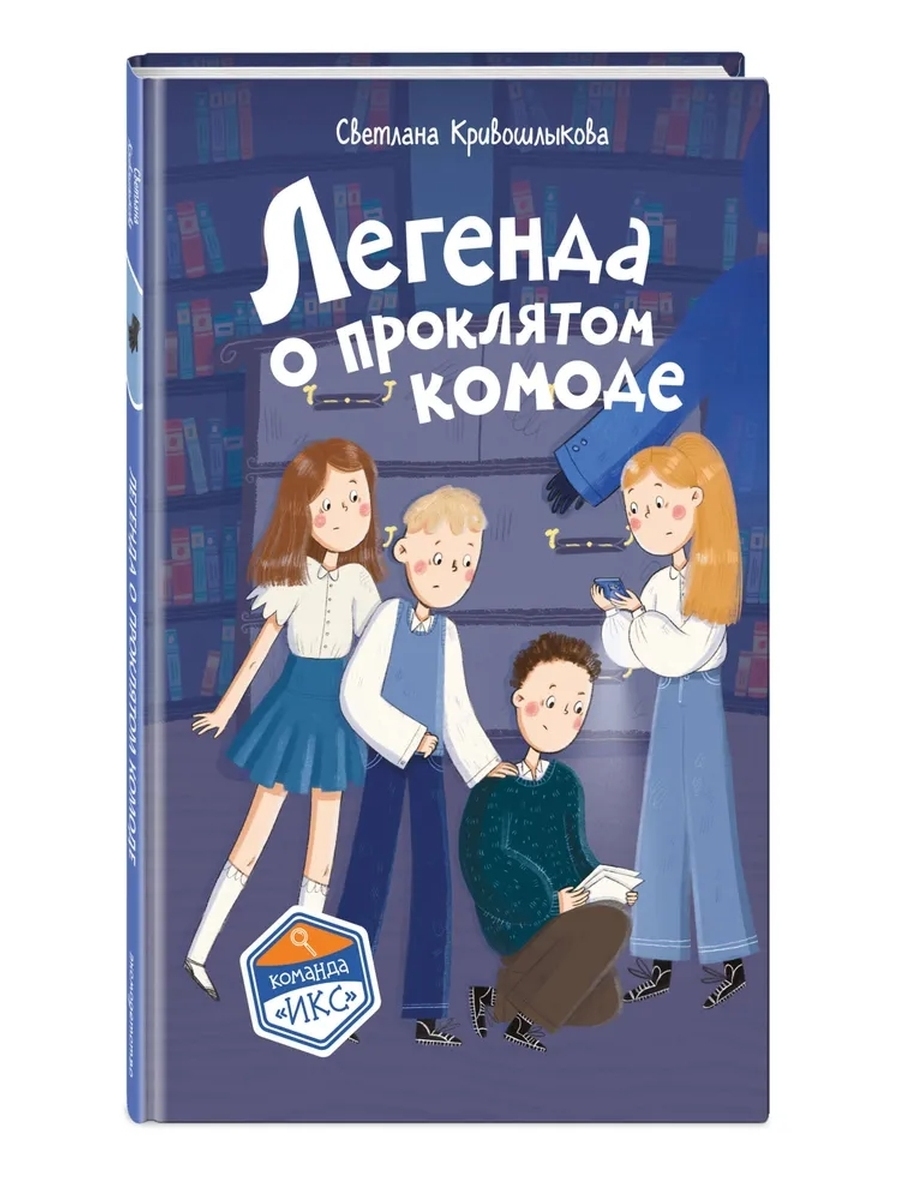 Новая детективная серия для поклонников «Чёрного котёнка» и «Мейзи Хитчинс»! Добро пожаловать в школу-пансион с вековой историей, где за старинными стенами скрываются самые необычные тайны! Светлана Кривошлыкова — автор многочисленных книг для детей и подростков, победитель литературного конкурса «Open Eurasia-2018», председатель Союза детских и юношеских писателей. Трое друзей — Илья, Кира и Сашка — объединяются в команду «ИКС», чтобы расследовать загадочные события. Они учатся, дружат, ссорятся и мирятся… а ещё — берутся за дела, от которых даже у учителей бегут мурашки! В усадьбе снова неспокойно. В потайной комнате обнаружен комод, покрытый сажей. Поговаривают, что он проклят. Для команды «ИКС» это шанс раскрыть очередную тайну и победить своих соперников из «Вектора Власова». Но чем глубже ребята копают, тем страннее становятся события: исчезают улики, оживают тени, а древние алхимические символы будто складываются в послание. Смогут ли юные детективы раскрыть тайну комода, прежде чем проклятие доберётся до них самих? Действие историй разворачивается в уникальном месте — школе-пансионе, расположенной в бывшей купеческой усадьбе девятнадцатого века. Светлана Кривошлыкова мастерски описала загадочную атмосферу старинного здания и тайны, хранящиеся в нём. Соединение духа закрытого пансиона с современной жизнью обычных школьников делает чтение увлекательным, а раскрытие тайн — запоминающимся. История внутри каждой книги закончена: одна книга — одна загадка. Книги серии можно читать как отдельно друг от друга, так и вместе. Книги рассчитаны на детей от 8 лет и старше. Подойдут для внеклассного чтения. Ребёнок не устанет читать: в книгах крупный шрифт, белая бумага, запоминающееся оформление.