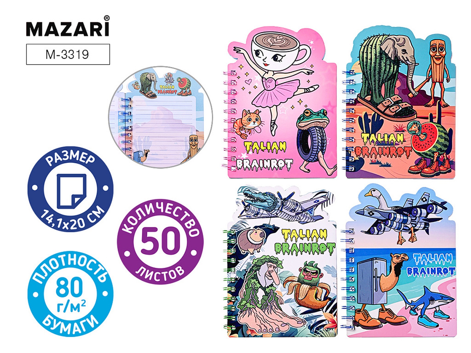 Блокнот на евроспирали ИТАЛЬЯНСКИЕ МЕМЫ 14.1*20.3 cм 50 л M-3319