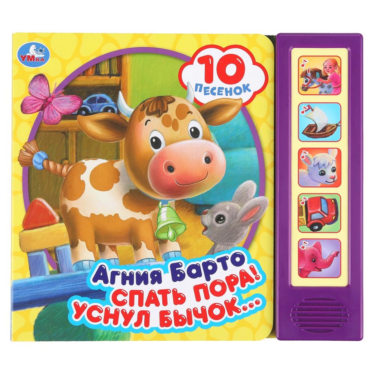 Музыкальная книга «А. Барто. Спать пора!» ТМ «УМка» станет прекрасным подарком для ребёнка: - 5 звуковых кнопок - 10 напетых стихотворений из цикла «Игрушки»: 1 - «Лошадка», «Мишка»; 2 - «Кораблик», «Мячик»; 3 - «Козлёнок», «Зайка»; 4 - «Самолёт», «Грузовик»; 5 - «Бычок», «Слон» - тексты стихов - яркие иллюстрации - кнопка Вкл./Выкл. на обороте Красочная музыкальная книга познакомит малыша с творчеством известной детской поэтессы Агнии Барто. Ребёнок легко освоит включение звука: по нажатию на кнопку звук включится, при втором нажатии выключится, при третьем - заиграет следующая песенка, а при четвёртом - вторая песенка выключится. Книжка сделана из плотного картона, поэтому родители могут не опасаться за её сохранность. Благодаря компактному формату её удобно брать с собой. Игра с музыкальной книгой ТМ «УМка» расширяет кругозор и развивает: - слуховое восприятие - навык чтения - фантазию - образное мышление - память - моторику Объём: 10 стр. Формат: 200 х 175 мм. Материал: картон + пластмасса. Работает от 3-х батареек типа LR44 (в комплекте). Рекомендовано детям младшего дошкольного возраста.