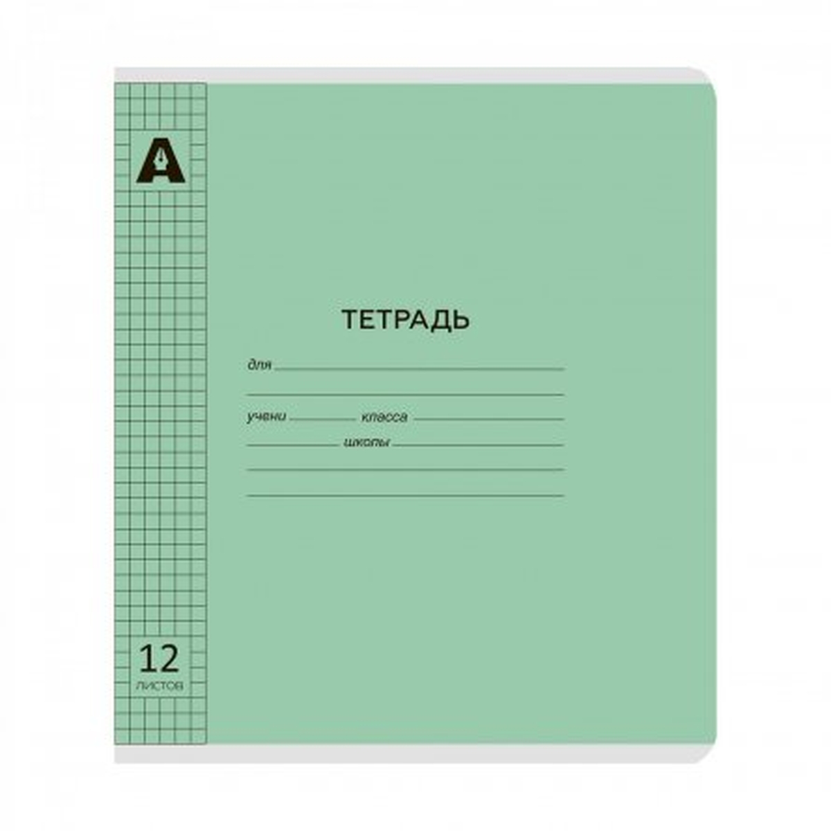 Тетрадь 12л Клетка Пластик Зелёный пастель AL12423