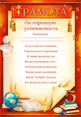 Грамота за хорошую успеваемость 0-264