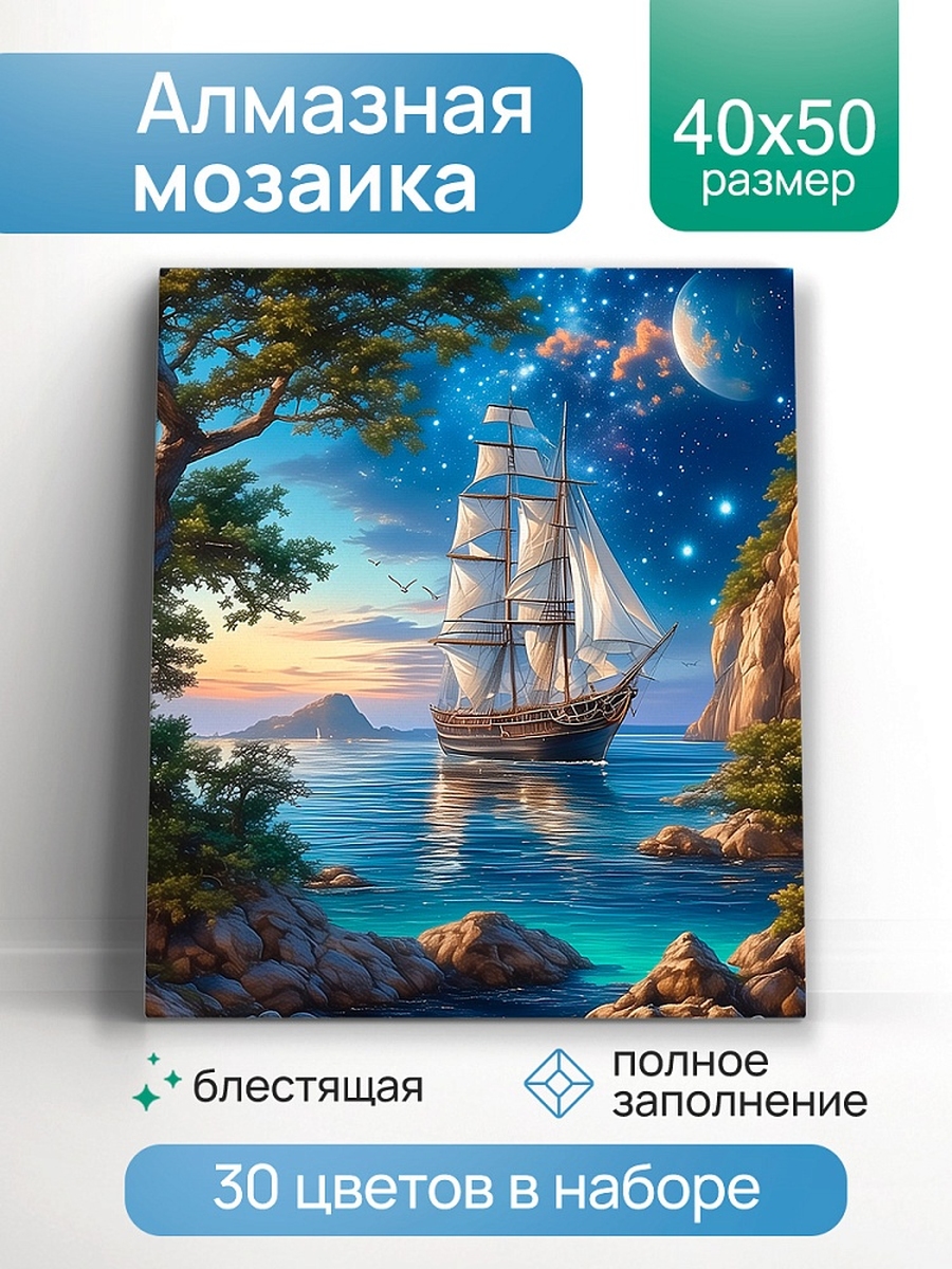 Алмаз мозаика блест класс 40х50 см с подр с полн заполн 30ц Пейзаж с парусником НД-1410