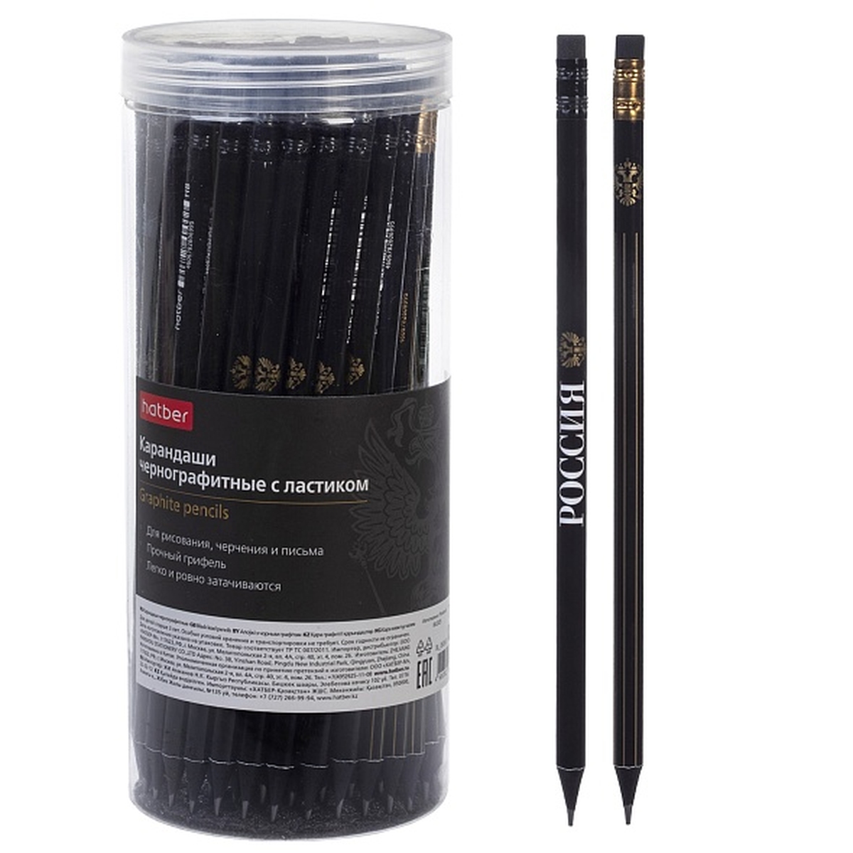 Карандаш ч/г HB с ластиком круглый корпус Символы России BL_092652