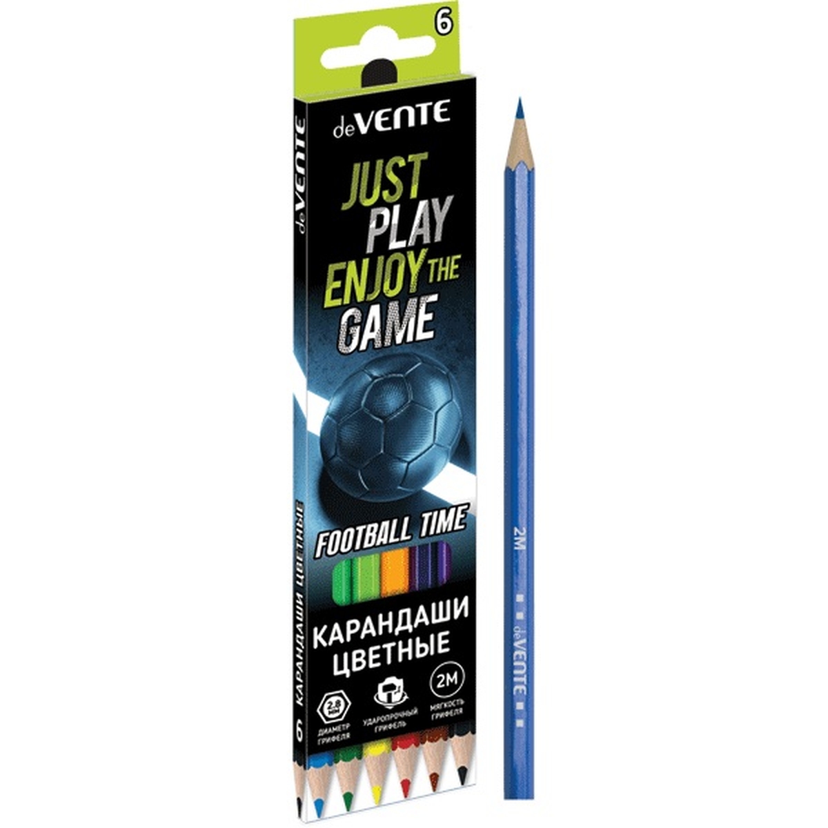 Карандаши 6цв Football Time 2М диаметр грифеля 2,8 мм шестигран 5021419