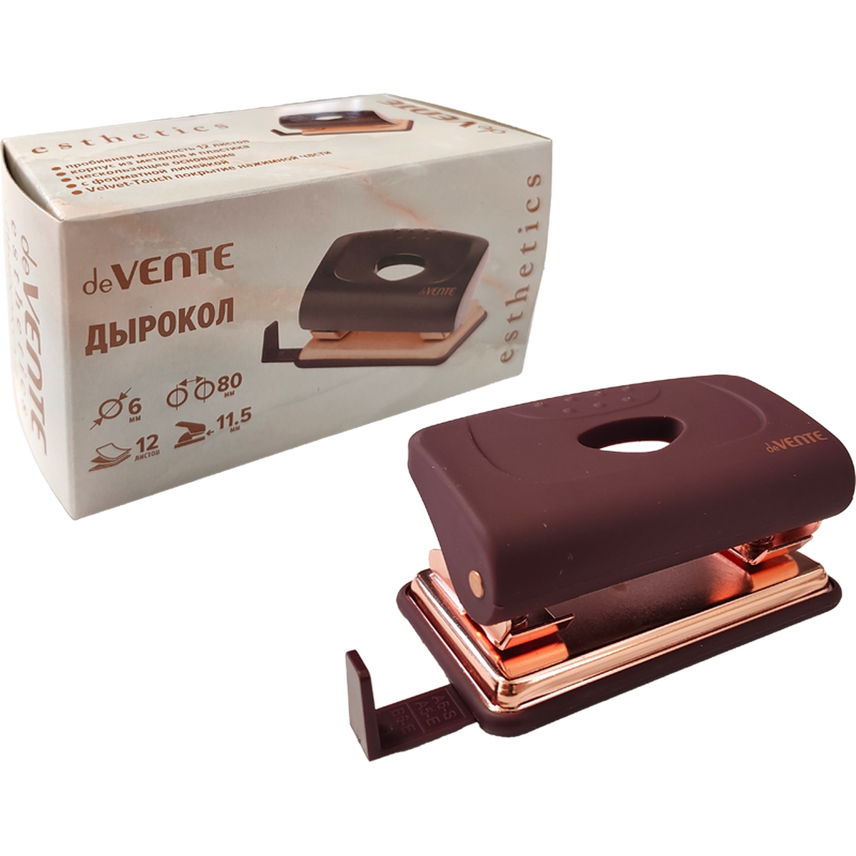 Дырокол 12л Esthetics пласт с линейкой цвет бургунди 4020515