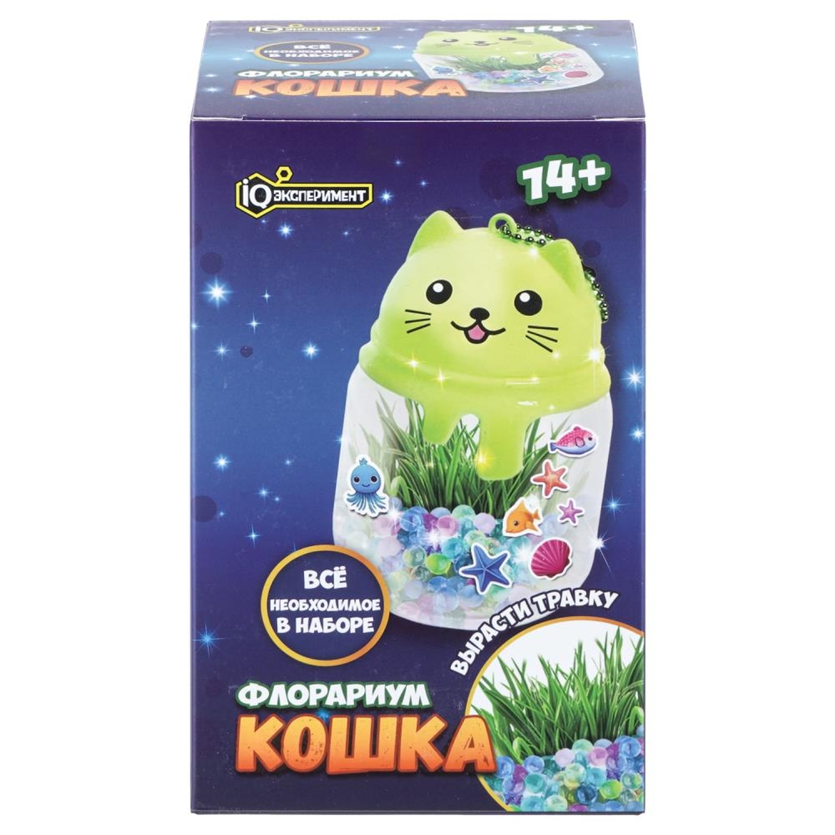Набор для опытов по выращиванию растений «Флорариум. Кошка» ТМ «IQ Эксперимент» создан специально для юного садовода: - оригинальный дизайн - простая и понятная инструкция - всё необходимое в наборе - для прорастания семян потребуется несколько дней - можно использовать как подвеску-брелок В комплекте: - флолариум в виде баночки с крышкой-кошечкой - семена - растущие шарики (гидрогель) - наклейки При помощи этого увлекательного набора маленький любознайка сможет провести эко-опыт и создать оригинальную растительную композицию в виде флолариума оригинальной формы. Гидрогелевые шарики, которые послужат грунтом для будущих растений, готовятся заранее: их высыпают в глубокую ёмкость, заливают водой и оставляют на 4-6 часов. Далее подросшие шарики помещаются в баночку-основу, декорированную милыми наклейками; семена распределяются по поверхности грунта и спрыскиваются водой. Флолариум необходимо поместить под солнечный свет - через несколько дней семена прорастут. Рекомендуется открывать крышку баночки для проветривания на пару часов каждый день. Набор познакомит ребёнка с основами садоводства и покажет процесс всхода растений. Благодаря тому, что зелень растёт в любое время года, набор в красивой упаковке подойдёт для подарка на любой праздник. Игра с набором ТМ «IQ эксперимент» способствует изучению окружающего мира и развивает: - ответственность - интеллект - творческие способности Размер: 9 x 7 x 7 см. Материал: пластмасса. Рекомендованный возраст: 14+.