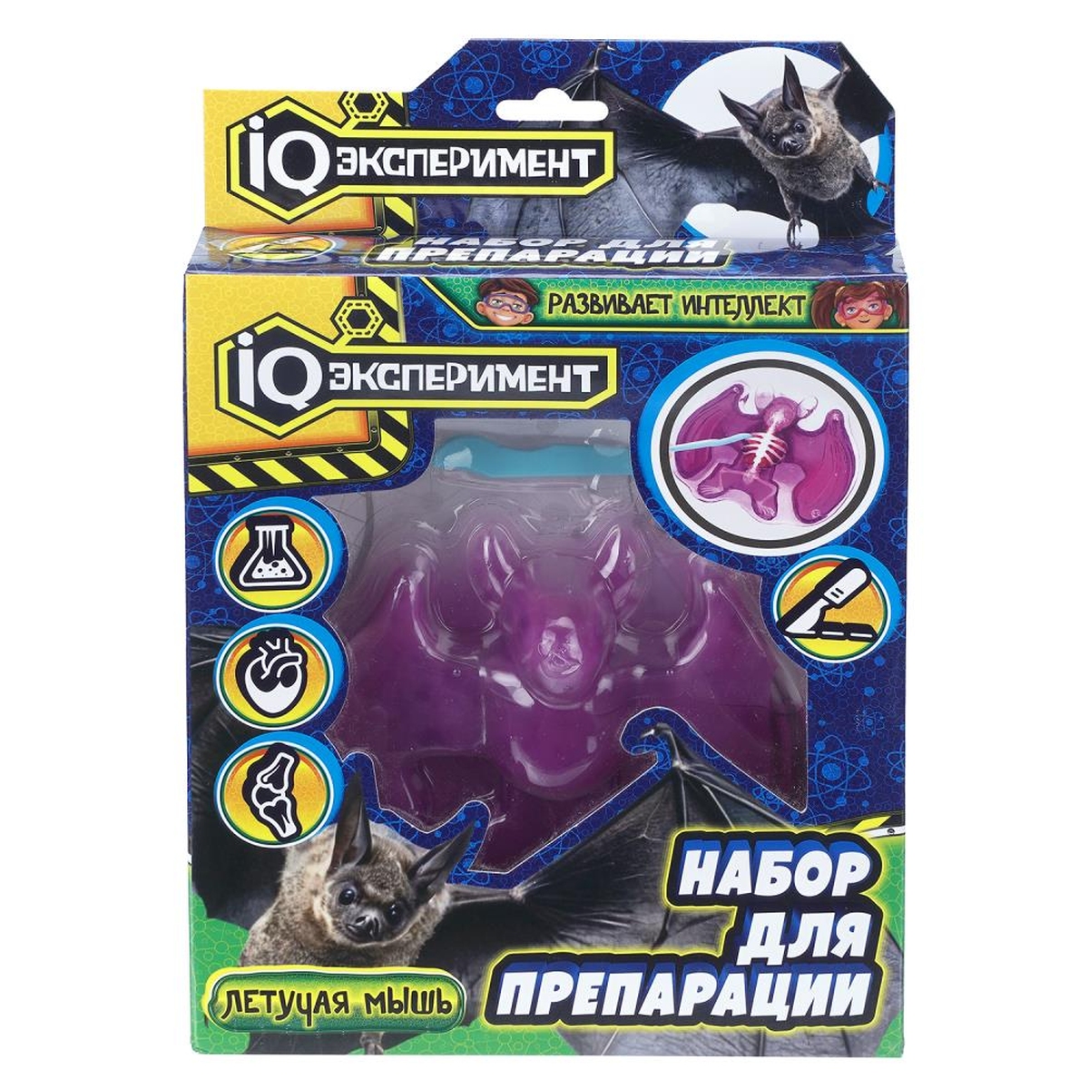 Набор для препарации «Летучая мышь» из серии «Опыты по биологии» ТМ «IQ Эксперимент» станет замечательным подарком для маленького любознайки: - увлекательно и познавательно - пластиковый скальпель в комплекте - слайм-антистресс приятный на ощупь - красочная фирменная упаковка Этот набор для опытов превратит изучение темы по анатомии живых существ в увлекательную игру и поможет простым и запоминающимся способом познакомить ребёнка со строением их тела. В набор входит скелет летучей мыши, помещённый в слайм. Задача ребёнка — с помощью пластикового скальпеля, входящего в комплект, аккуратно разрезать слайм и извлечь спрятанный внутри скелет. Приятные тактильные ощущения от взаимодействия с полупрозрачным слаймом не только удерживают внимание юного исследователя, но и способствуют развитию мелкой моторики. «Операция» проходит под его личным контролем, даря ощущение настоящей важной миссии — словно он проводит серьёзное исследование в настоящей лаборатории! Этот игровой набор входит в серию занимательных экспериментов, которые не только развлекают, но и развивают ребёнка. Наглядная демонстрация пробуждает искренний интерес к науке — без скучных учебников и долгих объяснений. Игра с набором ТМ «IQ Эксперимент» способствует изучению окружающего мира и развивает: - логическое мышление - интеллект - фантазию - моторику Размер упаковки: 21 х 24 х 5 см. Материал: пластмасса + полимер. Рекомендовано детям старше 5-ти лет.