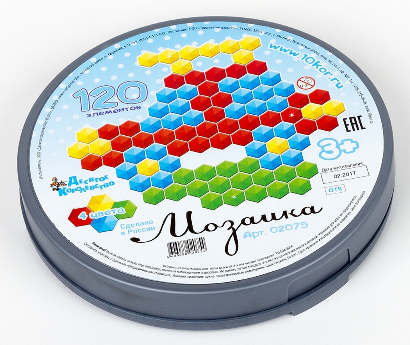 Мозаика шестигранная круглая 120 эл пласт коробка 02075