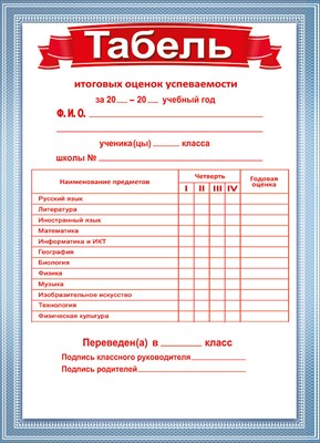 Табель успеваемости 086.932