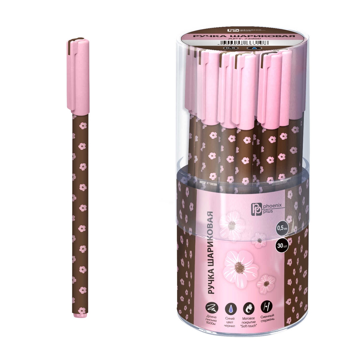 Ручка шар0,5мм Синий ЦВЕТОЧКИ НА КОРИЧНЕВОМ тубус 30 шт 72900