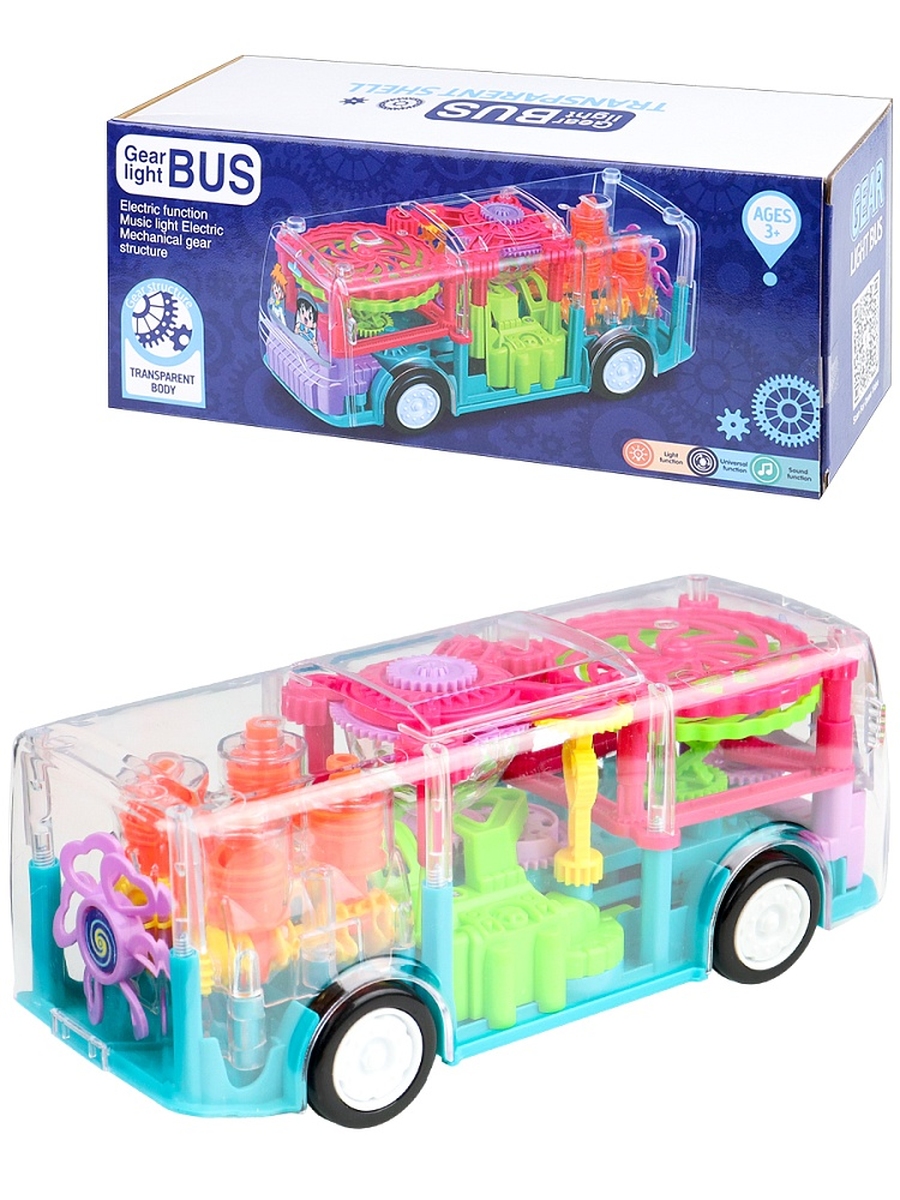 Машинка Автобус с шестеренками 22,7 см свет бат 3шт.АА не в компл в коробке 2051917