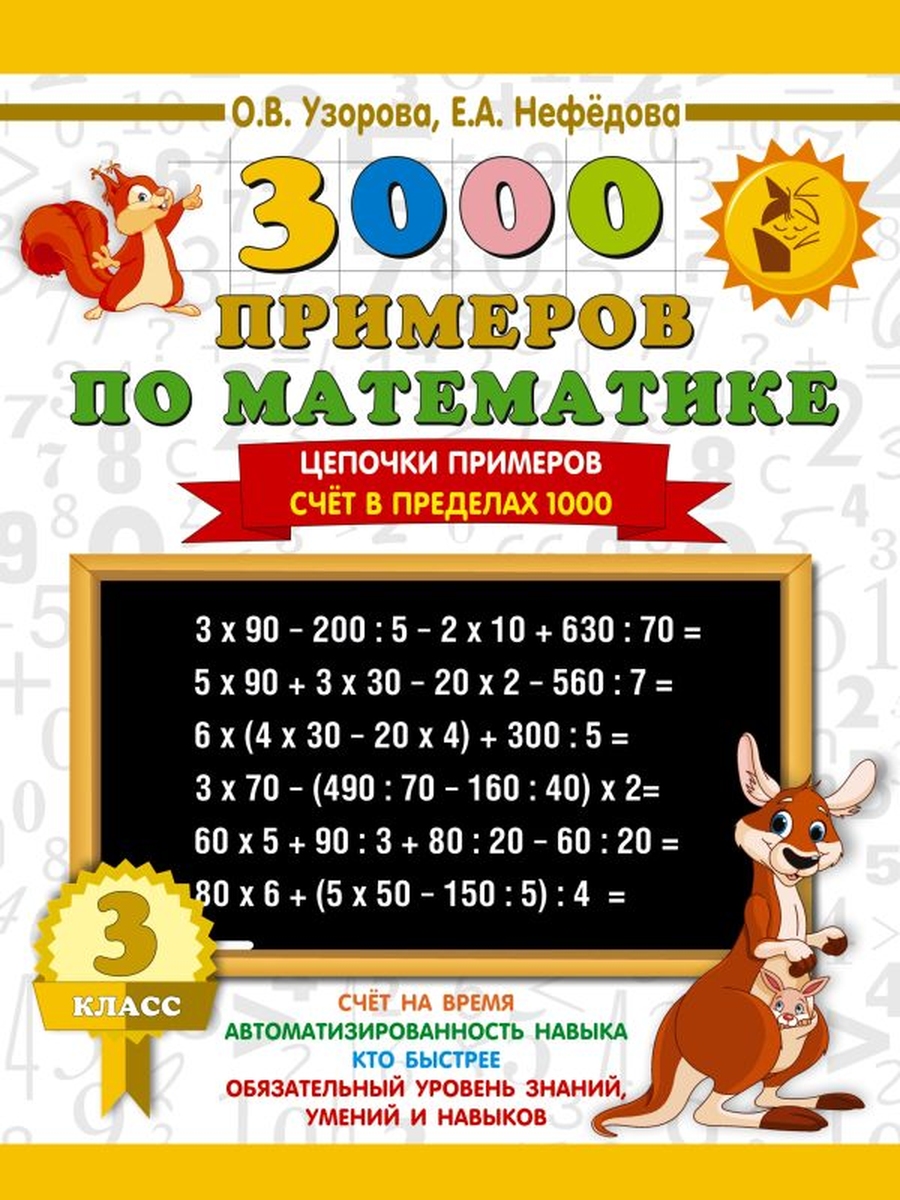 В пособии представлен материал, который поможет сформировать навыки устного счета по базовым темам 3 класса. Отвечая на вопросы учителя к каждому из приведенных примеров, учащиеся выполняют несколько математических заданий - всего более 3000 примеров. Последовательное выполнение заданий пособия поможет ученикам овладеть навыками устного счёта всех форм: беглым слуховым счётом (учитель вслух читает цепочку примеров, делая небольшие остановки для подсчёта, и ученик через несколько секунд отвечает), зрительным счётом (цепочки примеров записаны, а ответы ученик либо сообщает устно, либо записывает), комбинированным счетом (учитель диктует цепочки примеров, а ученик записывает ответы). Систематическое выполнение этих заданий развивает логическое и математическое мышление, сообразительность, укрепляет память и внимание. По усмотрению учителя цепочки примеров можно использовать как для олимпиадных работ и заданий повышенной сложности, так и для повторения и закрепления изученной темы. Для лучшего усвоения материала рекомендуется решать по десять примеров в день. Пособие можно использовать на уроках математики и для самостоятельной работы дома.