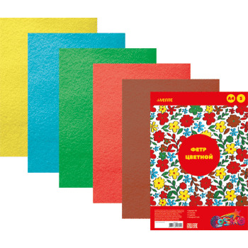 Фетр цветной 5л 5цв A4 Яркие цвета 1мм 8040682