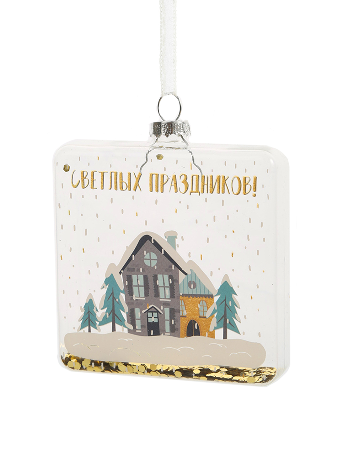 Новогоднее подвесное украшение Фляжка с домиком из стекла / 2,5х9,5х9см арт.81805