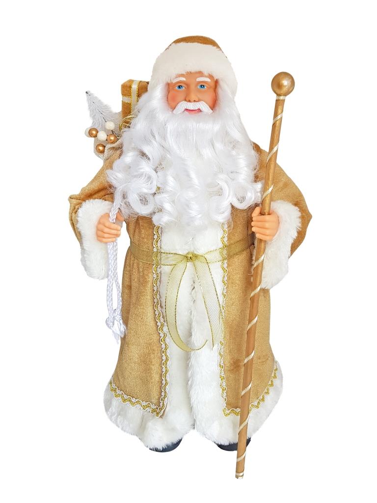 Новогодняя фигурка Дед Мороз 22x10x40см в золотом костюме из пластика и ткани 79089