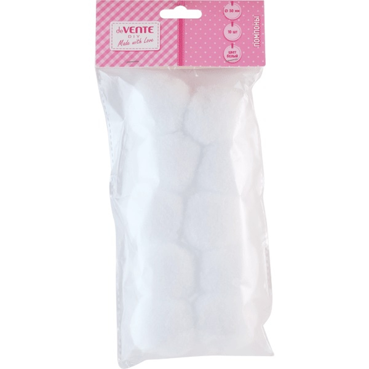 Набор помпонов для творчества 50мм 10шт белый 8000045