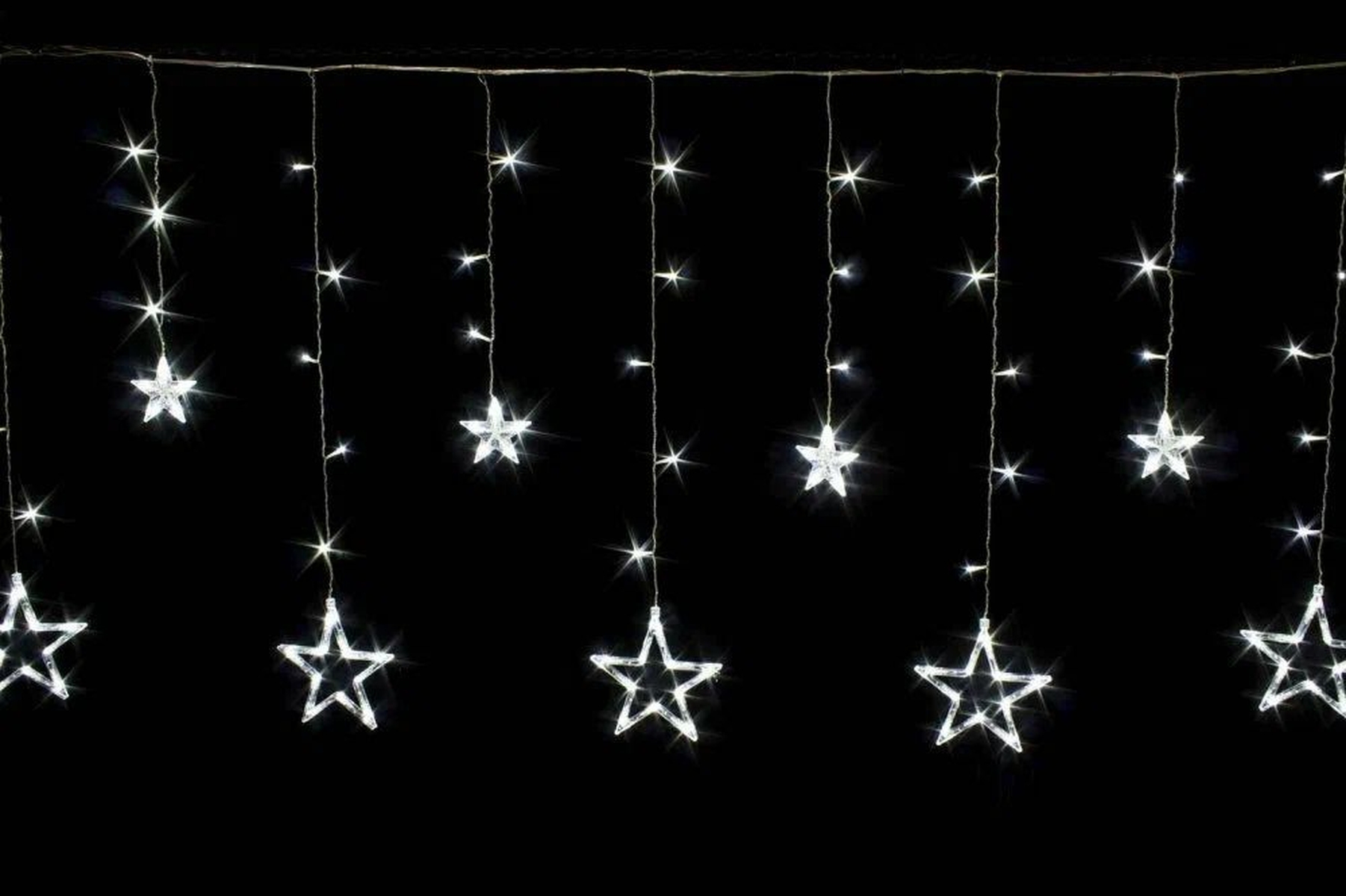 Гирлянда Бахрома со звездами 4х0,6м прозр. нить 120 белые лампы 8 реж Для дома НУ-3639